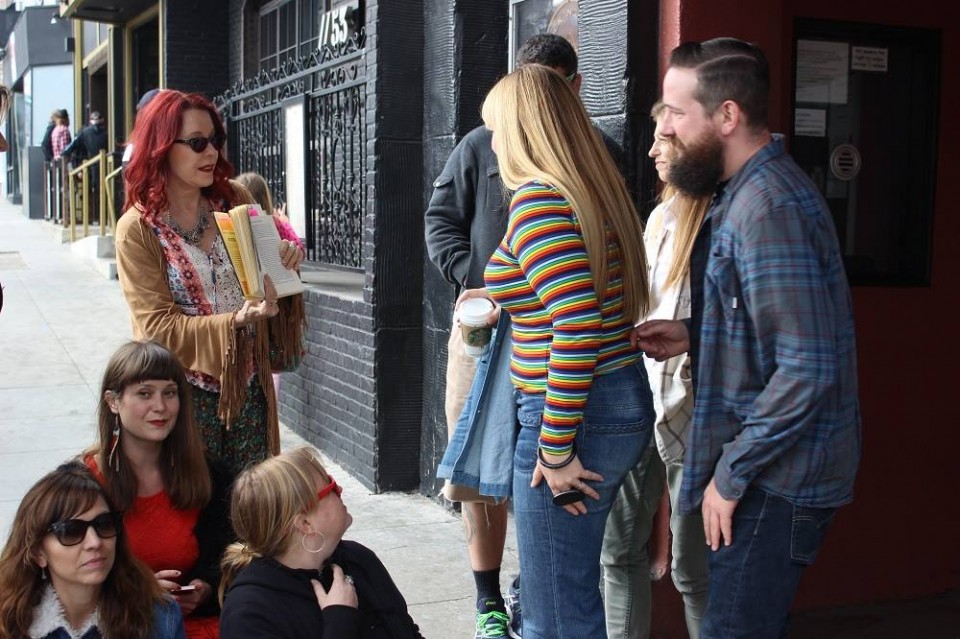 As pedestrians bustle by, a group of kindred spirits is gathering at the corner of Sunset and Ivar. Singles, couples, and a film crew. Their watches synchronized; they walk toward each other like magnets with a secret handshake. They’re all there for the Pamela Des Barres I’m With The Band Rock Tour.