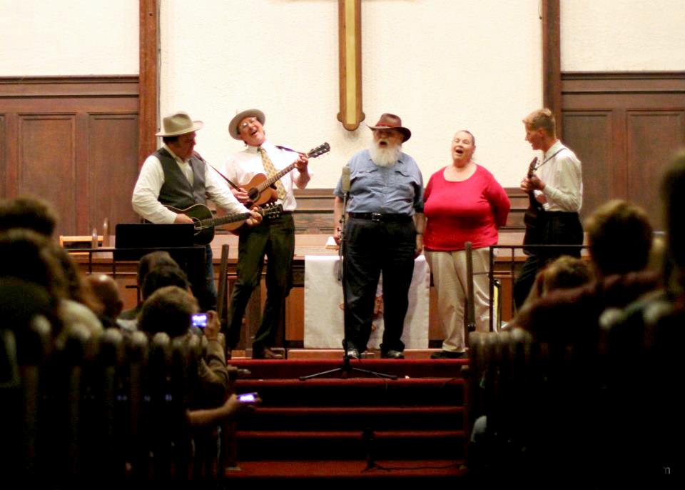 Lou Curtiss (center) with John C. Reilly, Gregory Page, Virginia Curtiss, and Tom Brosseau. Photo by Dennis Andersen.