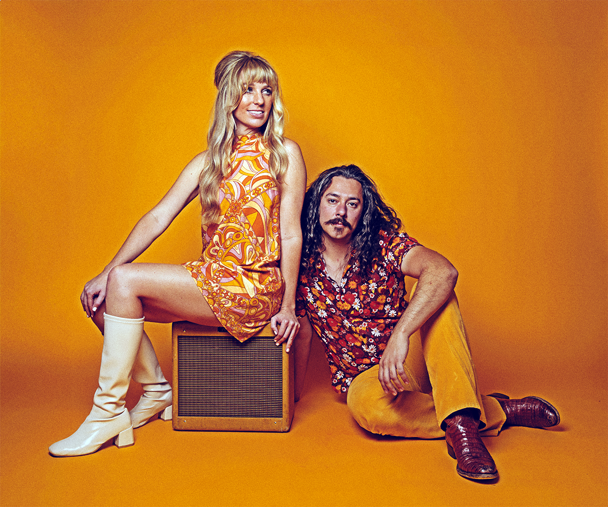 KB: No, we were friends for a year. We met through the music scene. He had his own band, I had my own band, but we always shared a love for old rock ‘n’ roll. I always thought he was so cool because he wore bell-bottoms before they came back in style. Especially for guys—he was wearing them in 2012! And he’s always had sideburns. I’m obsessed with old fashion, and I thought it took so much confidence to look that way when I knew it wasn’t the trend. He fits in well now, but eight years ago? It was bold. We bonded over Led Zeppelin and the Beatles, and a year later, when his band dissolved and I dissolved mine, we just started playing together and never stopped.