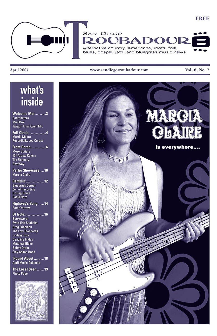 From its very beginning, the San Diego Troubadour has focused on local musicians, the ones playing the clubs, cafes, and smaller concerts around town. It hasn’t mattered that you may be a singer and guitarist who plays silly songs at children’s parties, Liz Abbott and the Troubadour will profile you. You might even be featured on the cover.