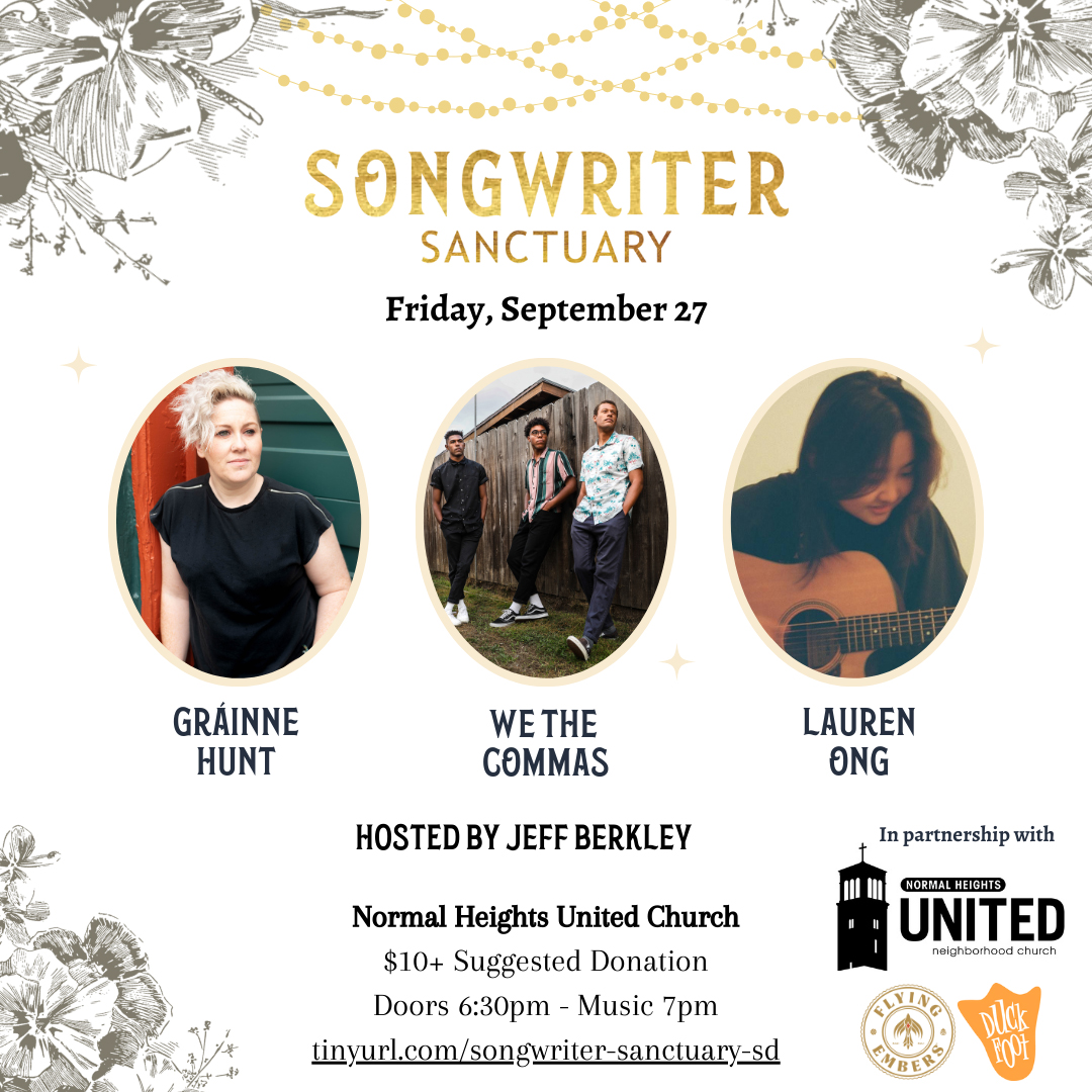 Come out this month for a very demure, mindful, and cutesy Songwriter Sanctuary lineup, featuring Gráinne Hunt (all the way from Ireland), Lauren Ong (who splits her time between SD and Singapore), and We the Commas (a homegrown act fresh off some of the biggest arena and festival stages in town). Mark your calendars for September 27 – see you there! Info/Details.