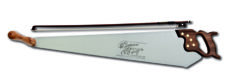 The average saw is about five inches at the handle and one inch at the tip. It’s designed to produce two octaves of range regardless of the blade’s length. A bass saw is the exception with a six-inch handle and a range of two and a half octaves. Two-person saws or “misery whips” are still produced but possess a very limited accuracy and range.
