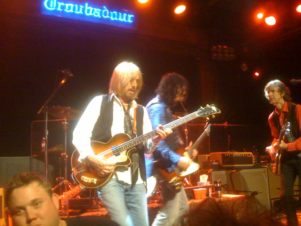 I explained in the online version of my Steely Dan article from the October edition of the Troubadour how one of the roles of working at Reelin’ in the Years Productions was acting as a consultant for the Rock and Roll Hall of Fame, which took David Peck and myself to the Waldorf-Astoria ballroom in New York City for five straight years to witness the induction ceremonies in person. In 2004, we had the privilege of seeing Petty and Jeff Lynne induct George Harrison as a solo artist, which included the spine-tingling jam at the end of the evening with Prince soaring through an electrifying “While My Guitar Gently Weeps.” In 2002, we were in attendance to see Tom Petty and the Heartbreakers get inducted into the Hall, affording us the opportunity to meet Petty and Mike Campbell and develop a professional relationship. Several months later we ended up hanging out for an hour with the band backstage at the San Diego Open Air Theatre and this is how I found out firsthand that Tom Petty is an absolute bad-ass of a sweetheart, and as much a fan of rock ‘n’ roll as anyone in the universe. Sometimes you meet your heroes and they turn out to be jerks or in a bad mood on that particular day. Tom Petty, and all of the Heartbreakers, could not be any cooler. (The picture with Tom was taken October 29, 2002, and a month later, to the day, TP and the HBs were at the Royal Albert Hall in London performing at the Concert for George, and thanks to the generosity of Mike Campbell, I was able to sit four rows from the stage. That was the best concert EVER, and for a full recap of that once-in-a-lifetime evening, check out chapter two in my book Encyclopedia Walking: Pop Culture & the Alchemy of Rock ‘n’ Roll. The DVD of the event fills in the remainder of the story. Hallelujah and Hare Krishna.)