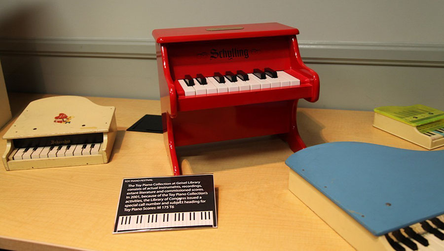 Currently, the Toy Piano Collection at Geisel Library consists of actual instruments, commissioned scores, and extant literature and recordings. Most of the commissioned scores in the collection are composed by UC San Diego alumni.