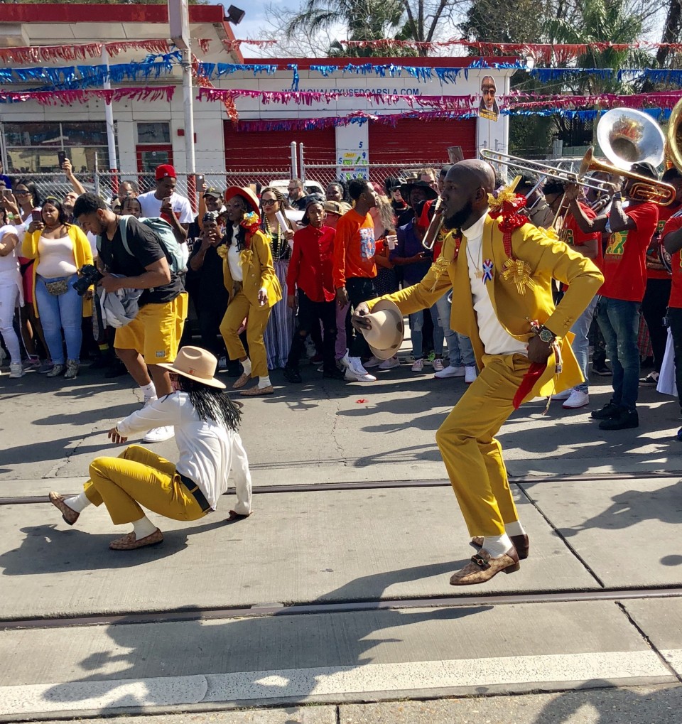 The vernacular of New Orleans brass bands originally comes from Congo Square and is informed by the music, clave/time feel and percussion of West and Central Africa. The repertoire was originally spirituals and hymns (“Closer Walk with Thee,” “I’ll Fly Away” et. al.) and call-and-response work songs. The experience of the second line in a memorial or celebration is what has shaped the repertoire of the music and the personnel of the band. The music is spiritual in a way that is subtly different than playing music through electronics, i.e., guitars, keyboards, and synths. The sounds come right out of the viscera of the body. The dancing that is paired with it is known as buckjumping, which requires its own essay to understand fully. Be sure to catch Buckjumping (a documentary from 2018). I dare any professional dancer or ironman athlete to roll on a four to five-hour second line through the streets of New Orleans and see if they can keep up with the local buckjumpers Several of my bands from San Diego have made the pilgrimage to Nola and all have experienced or performed in a parade. It truly moves you, changes your perspective, and makes you reconsider your whole way of life.